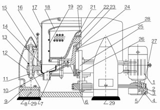 14. 外殼密封圈 15. 柱腳罩 16. 制動手柄 17. 外殼 18. 攔液板 19. 轉鼓筒體