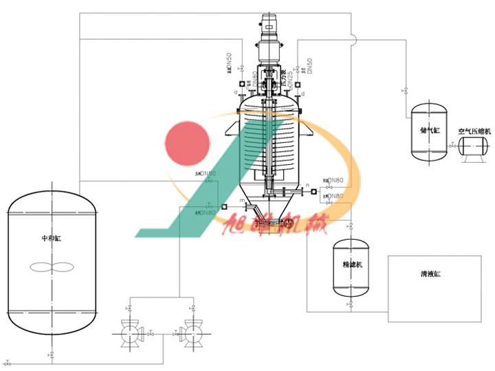 (5) 過濾系統:濾盤;濾網片;出液傳動主軸;機械密封等。排渣結束后使用清洗裝置清理排渣口。