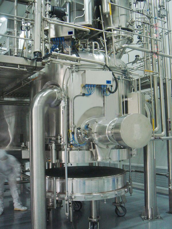 近幾年來,無錫旭曄機械研發的全密閉四合一結晶過濾洗滌干燥一體機,憑其可以在同一個容器內完成過濾、洗滌、干燥、取樣、自動出料以及可清洗和滅菌的優越性能,在原料藥過濾干燥生產中迅速推廣和應用,逐步替代了傳統結晶干燥類生產設備中諸如離心機、抽濾罐、箱式真空干燥機與雙錐回轉真空干燥器等設備,成為API原料藥精烘包生產線的專用設備。